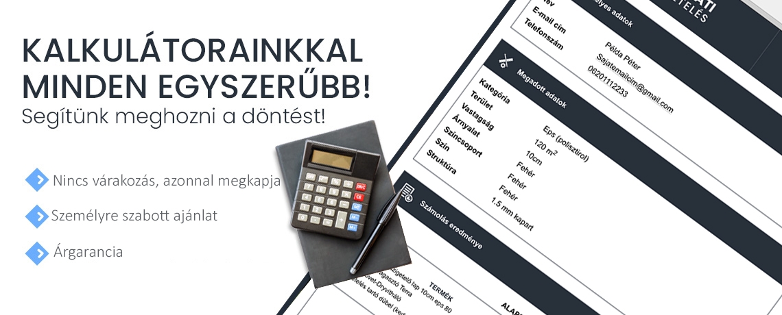 Sok konkurens cég próbálkozott hőszigetelő kalkulátorokkal azonban nagyon nehéz ezeket aktuálissá tenni. Amikor az ügyfél rendelni akar, sohasem volt az biztos, hogy milyen árakkal számolt régebben a kalkulátor. Mi ezt nem mertük addig meglépni, amíg nem tudjuk bekötni a hőszigetelő webáruházunkba.