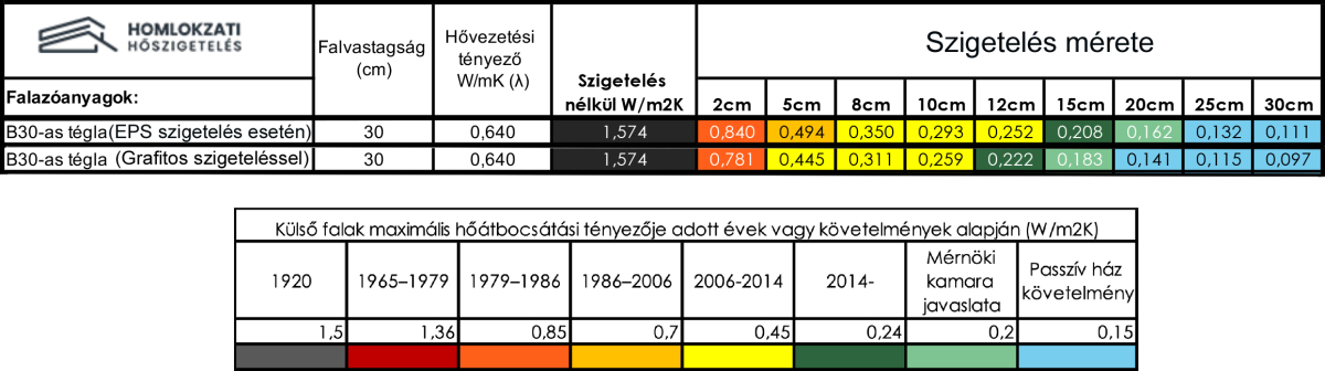 Milyen a jelenlegi hőátbácsátási tényezője a szigeteletlen b30-as falazatnak?