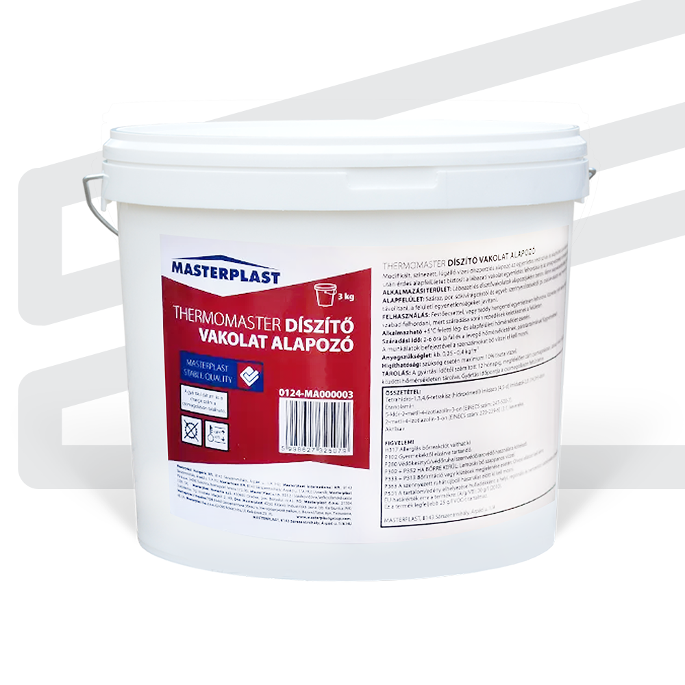 Thermomaster lábazati és díszítő vakolatalapozó 3 kg kiszerelésben, egyenletes nedvszívást és alapfelületi színt ad. Töltőanyag-tartalma száradás után enyhén érdes felületet biztosít, ami segíti a lábazati és díszítővakolatok egyenletes felhordását.